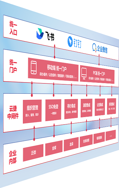 对协作平台提供支持服务,,支持企业应用与协作平台对接,,,,包含组织同步、、、、消息集成、、、待办集成等。。。。支持目前主流的协作平台:钉钉、、企微和飞书。。。。